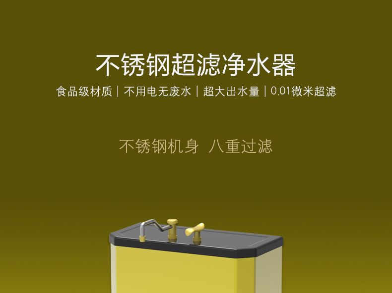 產品簡介:優端不銹鋼超濾凈水器采用食品級304不銹鋼材質機身,還原自然味8重過濾出水直飲,有效過濾有害物質,保留對人體有益的礦物質、孕婦、老人、兒童都需要。
