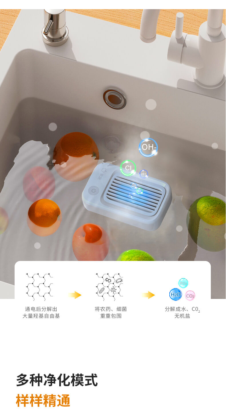 二、創(chuàng)新羥基水離子凈化技術(shù),無添加無副作用,有效祛除果蔬、肉類、五谷、餐具表面農(nóng)藥殘留、技術(shù)等有害物質(zhì);