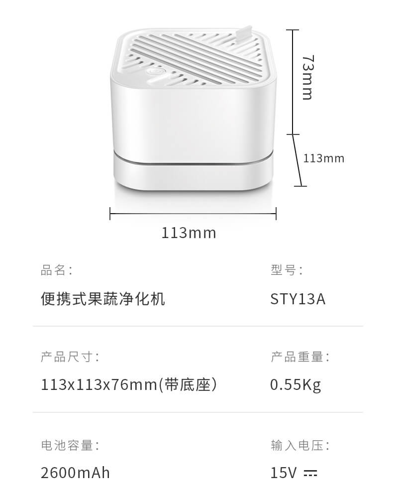 當前位置: 首頁>>產品中心>>果蔬凈化機STY13A無線充電果蔬凈化器