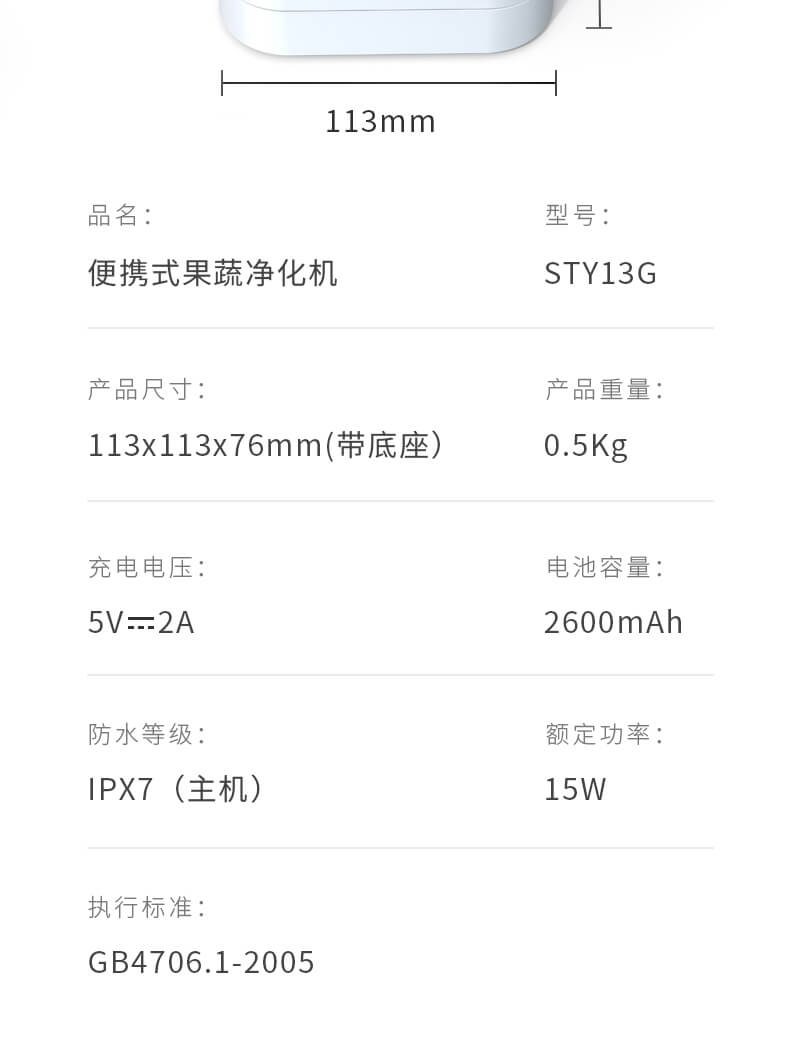 產品名稱:便攜式果蔬凈化機