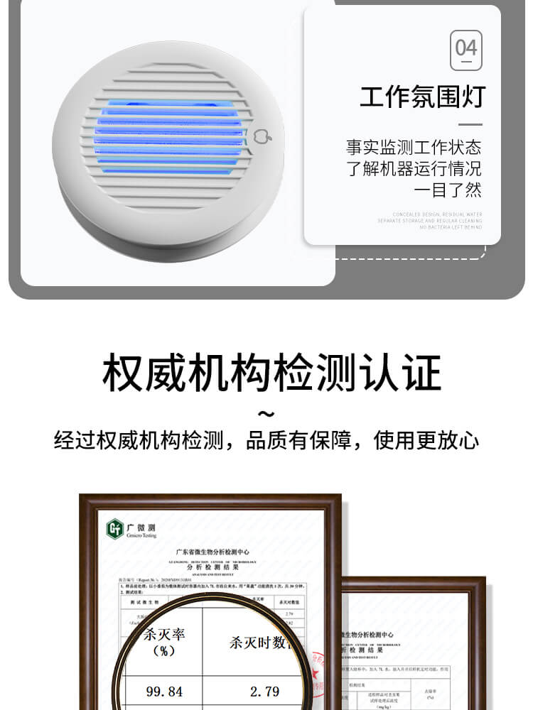 四、廣微測權威檢測認證,除菌率高達99.9%;